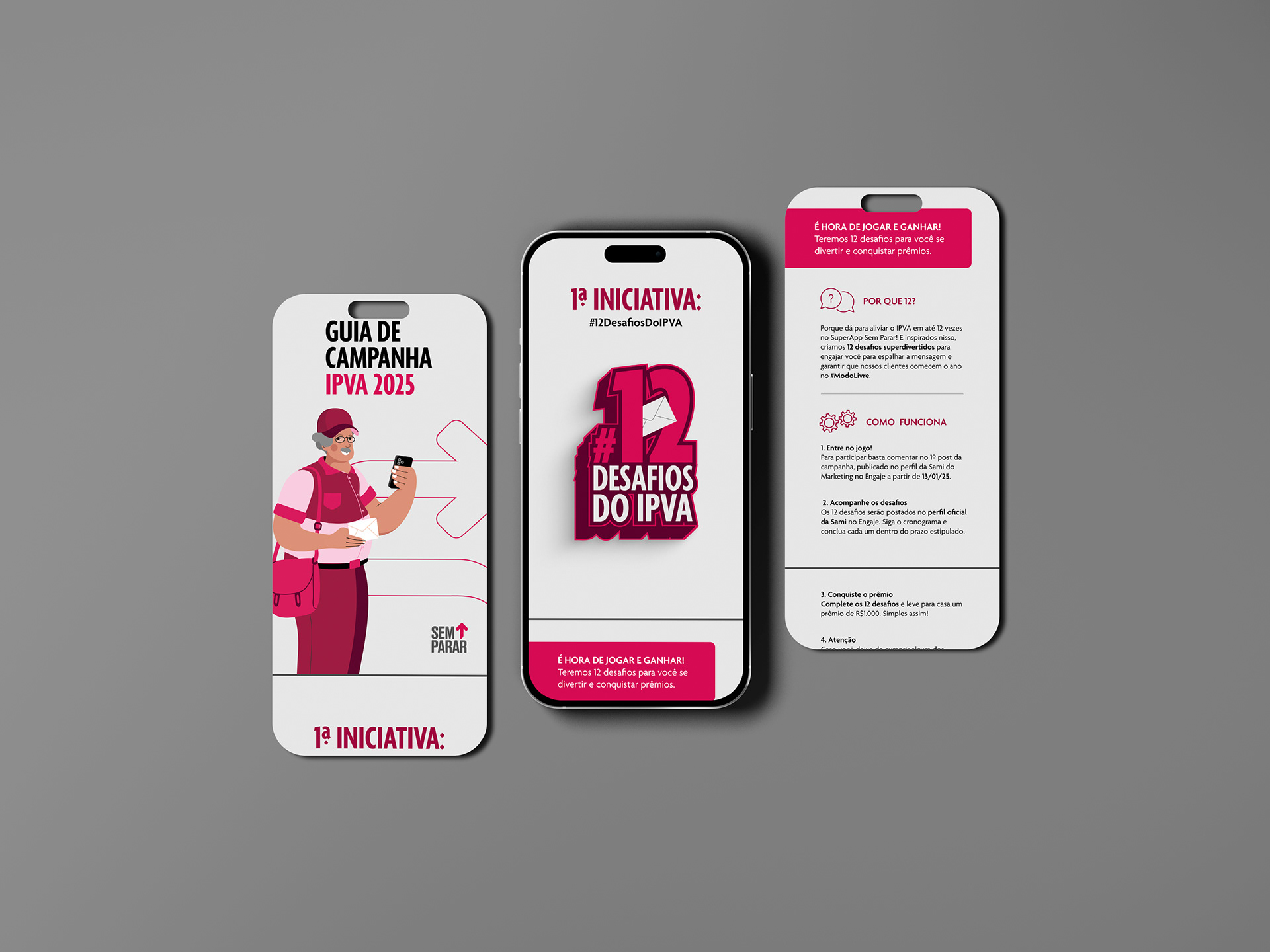 Folder digital criado para a campanha de IPVA 2025 feita para o Sem Parar em parceria com uma empresa do mesmo grupo também, a Zapay.